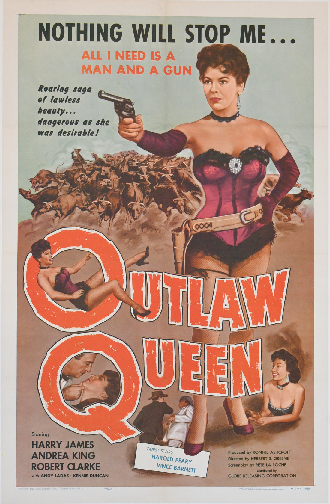 Original Vintage Outlaw Queen Movie Poster This Poster was printed in 1957 for the the...