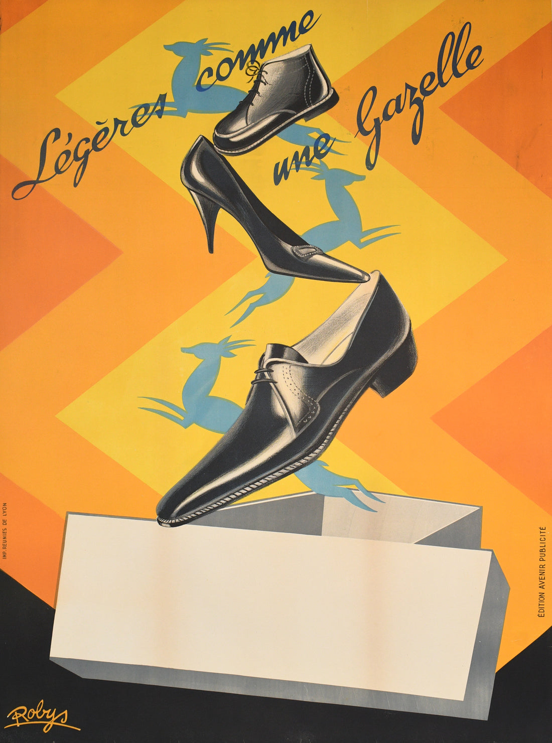 Vintage French Gazelle 1930's Advertisement Poster "Legeres Comme Une Gazelle" by Robys is a 1930s...