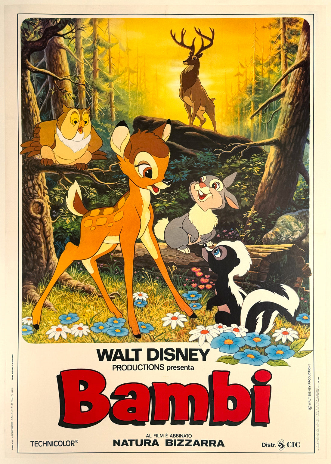 Original Vintage Disney Bambi Italian Movie Poster This poster was printed in 1942. The Bambi...