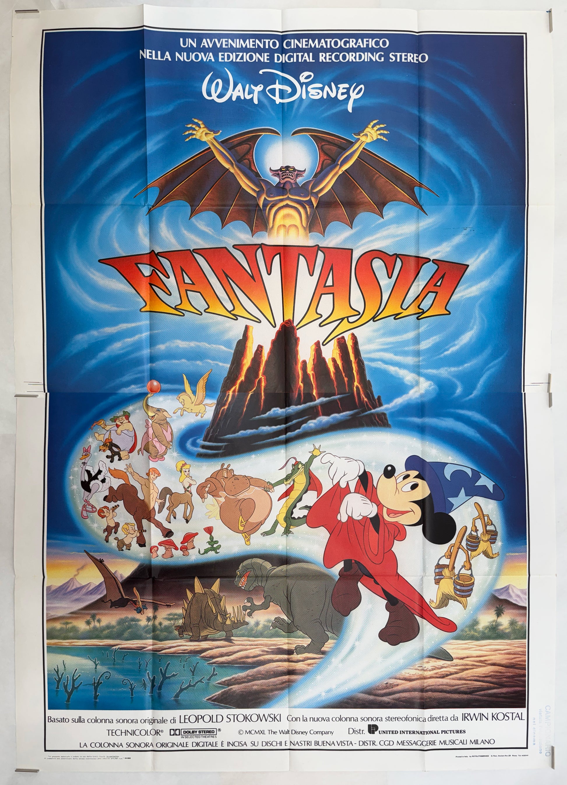 This poster printed in 1940 is an original poster to promote the 1940 Walt Disney film of “Fantasia”. The poster shows the setting of the movie as well as highlighting characters that appear throughout the film.