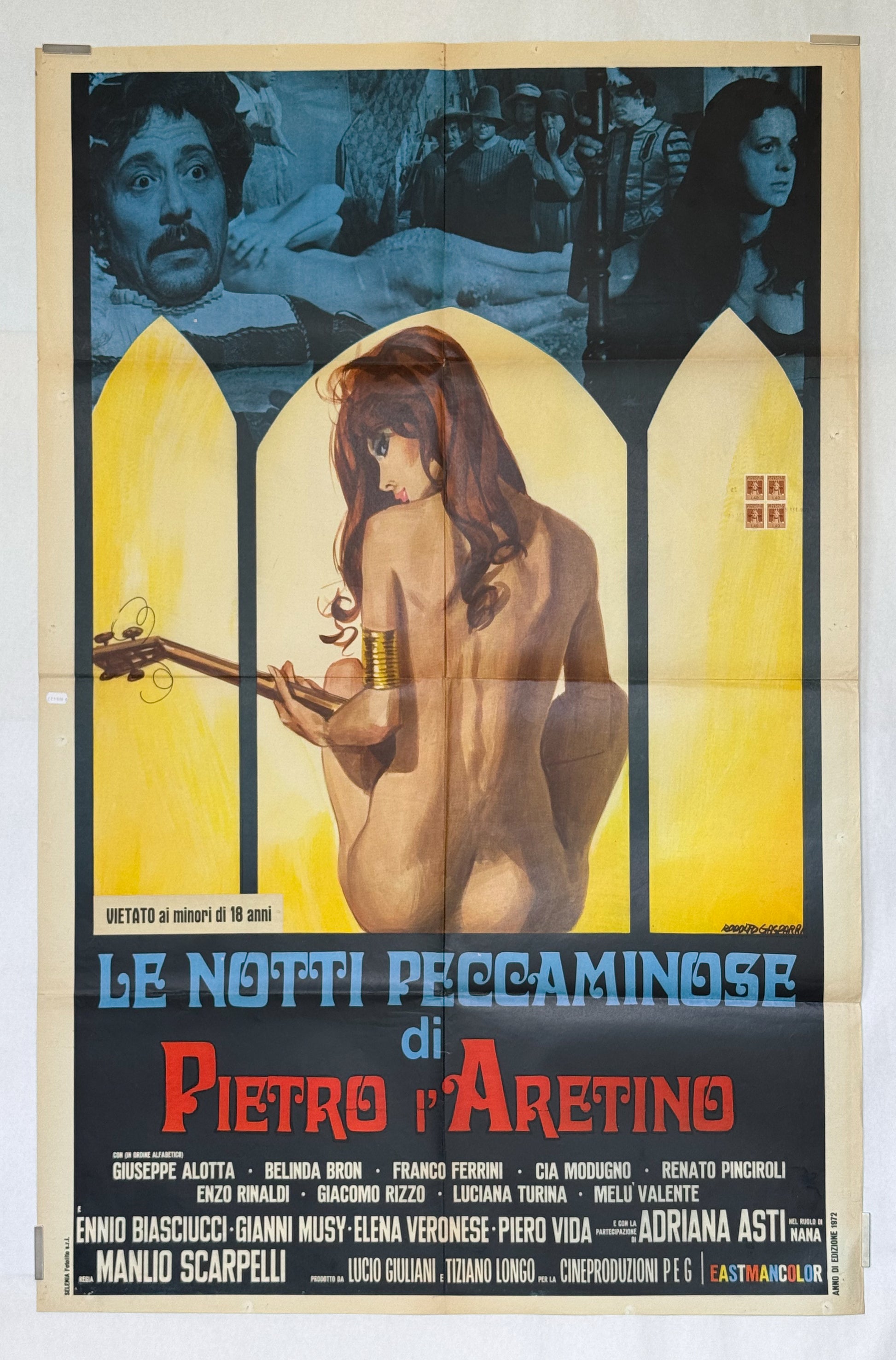 Original Vintage Le Notti Pe’ggaminose di Pietro l’Aretino Italian Comedy 1972 Movie Poster