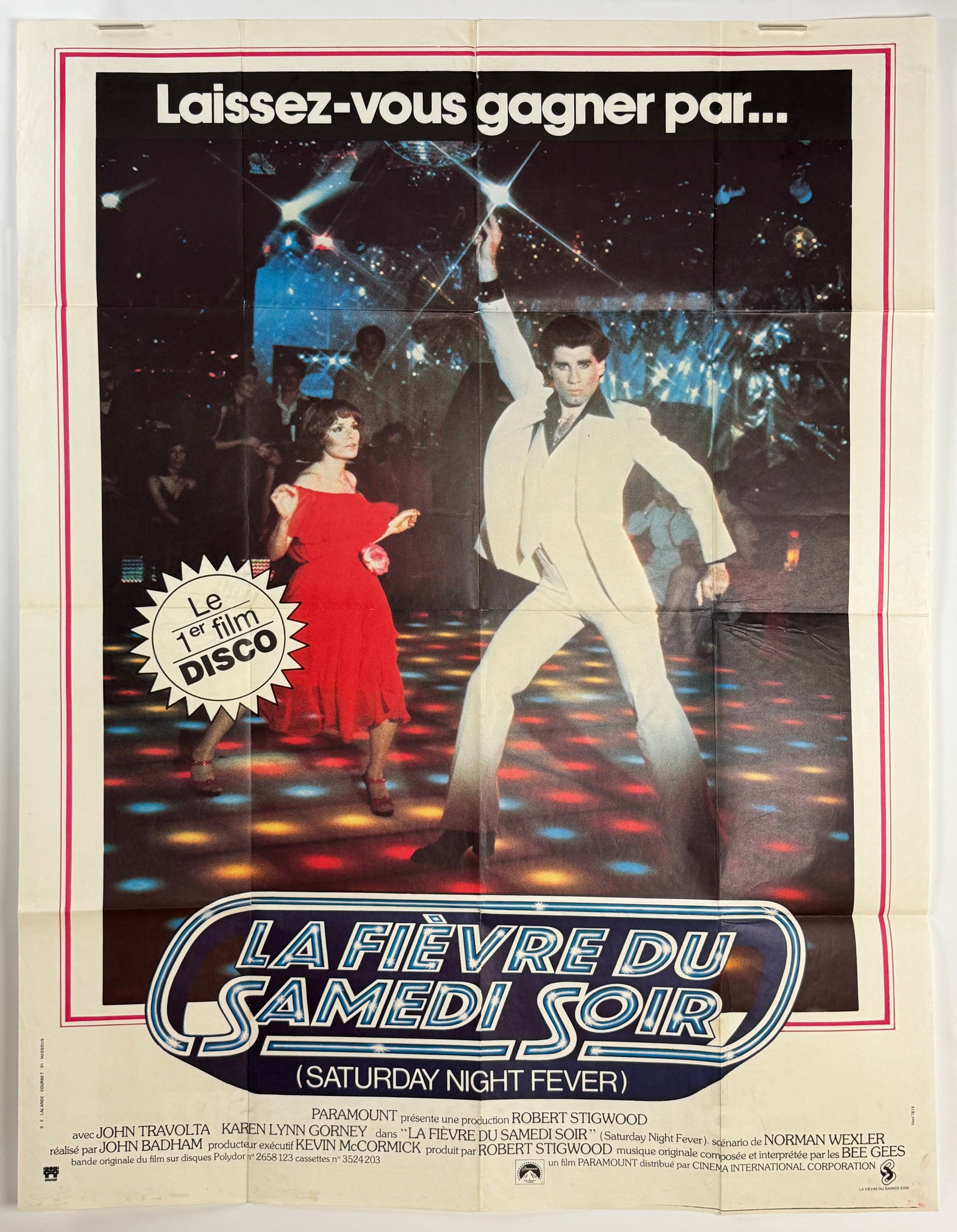 This poster was created in 1977 to promote the release of the film “Saturday Night Fever” in France. The film captured the disco craze of the late 1970s and had a significant impact on popular culture. The film stars John Travolta as Tony Manero, a young Brooklynite who escapes his working-class life through disco dancing.